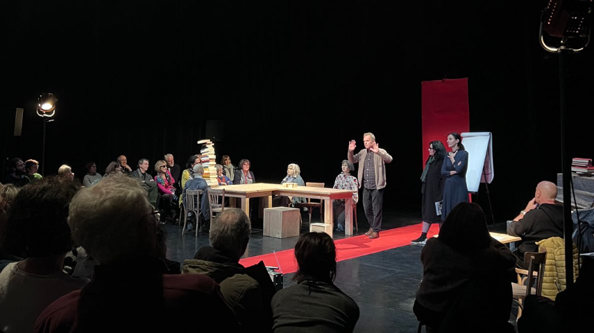Le vendredi 9 février se tenait la représentation de "Fragments", spectacle mis en scène par Charles BERLING, adapté et joué par Bérengère WARLUZEL et retraçant la vie de la politologue juive allemande Hannah Arendt. Le metteur en scène a pris la parole en fin de spectacle pour débattre avec les spectateurs et rendre un hommage poignant à Robert BADINTER.
